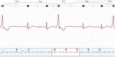 On-strip heartbeat markers (including R, A, and V) for direct visual annotation of beats (introduced in 2023 version 1.1)